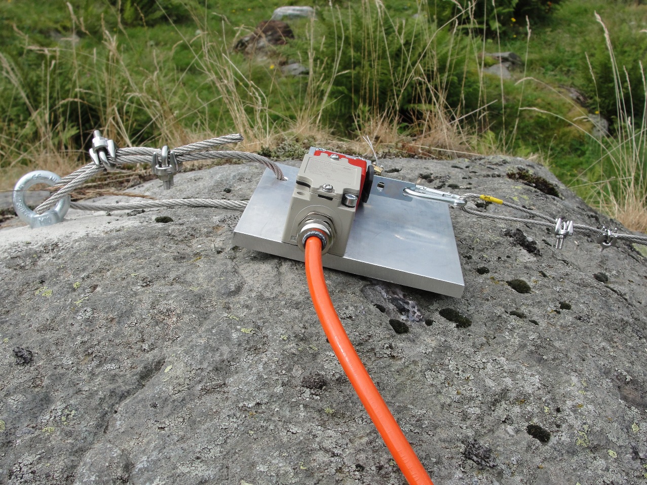 Alarmauslösender Schalter einer Reissleine, welche die Ampeln auf der Strasse auf Rot stellen kann.
