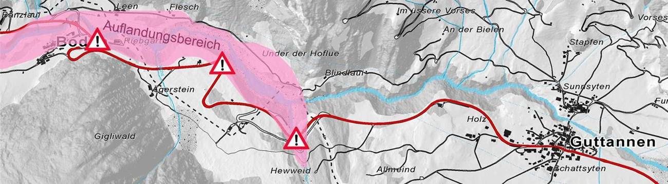 Konfliktstellen an der Kantonsstrasse zwischen Boden und Guttannen Dorf